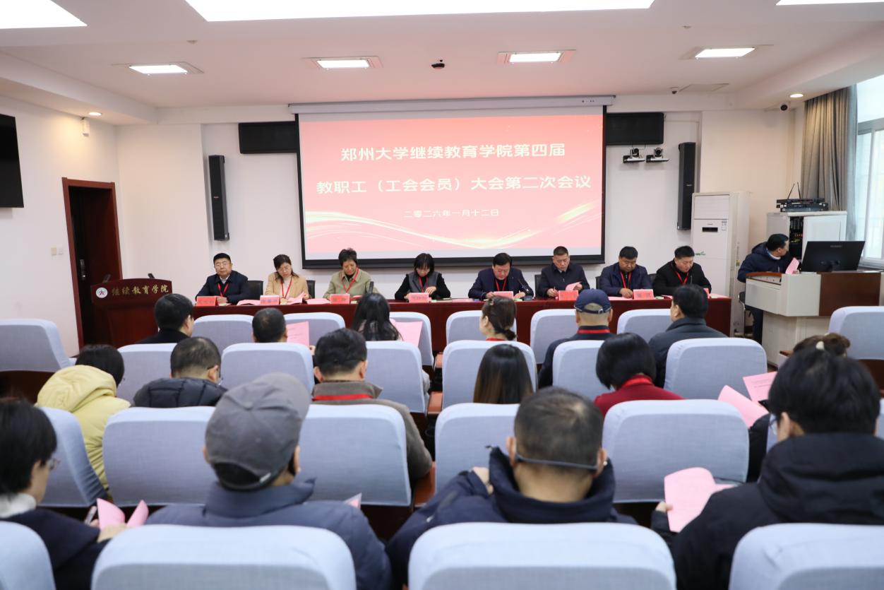 为充分激发教职工民主管理活力,扎实推进学院高质量内涵式发展,1月12日上午,继续教育学院第四届教职工(工会会员)大会第二次会议在教三楼118会议室隆重召开。学院党政领导班子及全体教职工齐聚一堂,共谋发展。会议由学院党委副书记王志新主持。大会在雄壮的国歌声中拉开帷幕。会议严格遵循工会组织程序,通过无记名投票方式补选薛百战同志为学院新一任工会主席。 会上,学院院长、党委副书记、中心主任张洪剑作了题为《...