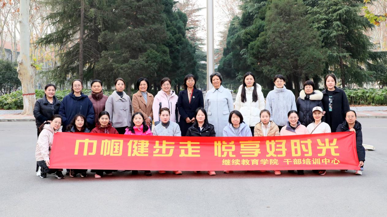 冬日暖阳,微风和煦。为深入贯彻落实全民健身理念,丰富女职工精神文化生活,12月9日下午,继续教育学院工会女工委在南校区校园组织开展“巾帼健步走 悦享好时光”主题活动。学院党委书记何玲玲、正处级组织员张玲、副院长徐春华、工会主席薛百战、女工委主任井靓及全体女教工共同参加了活动,以实际行动践行健康生活理念。